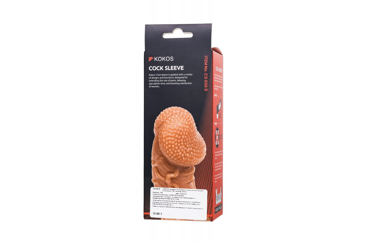 Увеличивающая насадка с фантазийным рельефом в виде вен и пупырышек от KOKOS открывает новые возможности для взаимного удовольствия и воплощает фантазии о внушительном размере пениса.