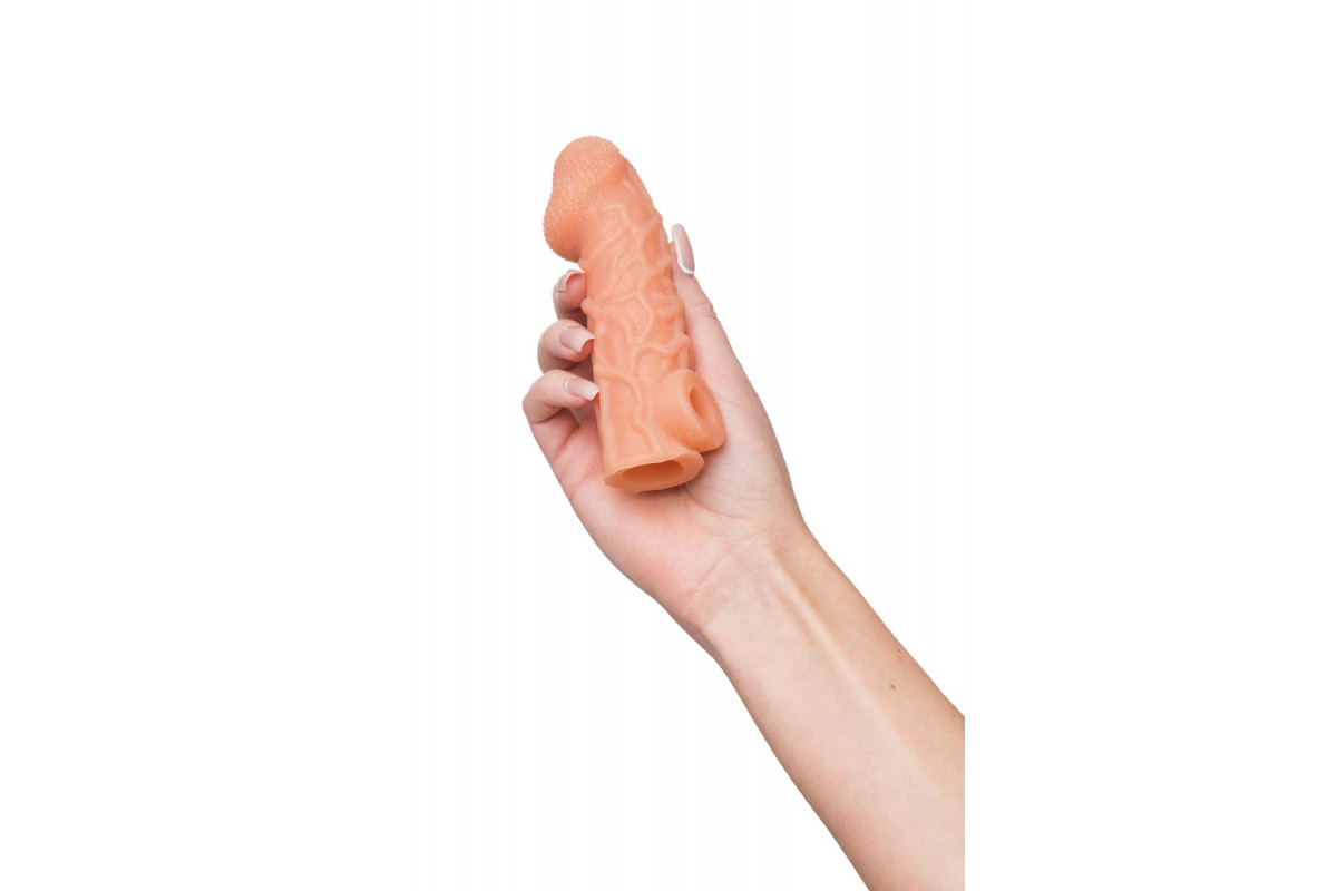 Телесная закрытая насадка с венками Cock Sleeve 006 Size S — идеальный выбор для тех, кто ищет новые ощущения и комфорт в интимных играх
