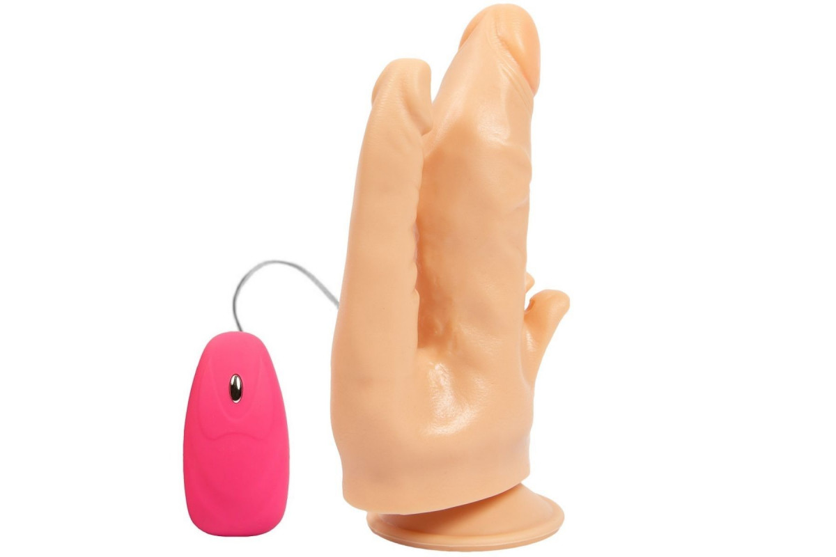 Фаллической формы вагинально – анальный вибратор с одним источником вибрации в большем корпусе. Анальная часть отливается из более жесткого материала. Вагинальный фаллос более эластичен. Отличие данной модели – 3 эластичных лепестка клиторального стимулятора. Проводной пульт управления. Диаметр анального отростка - 2,1 см.