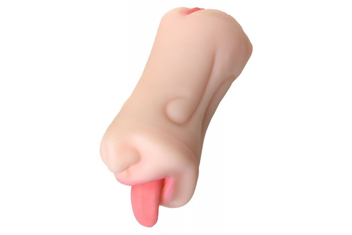 Телесный двусторонний мастурбатор Fruity Tongue - ротик и вагина