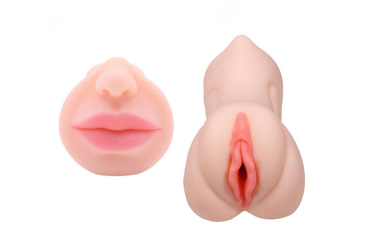 Телесный двусторонний мастурбатор «Жужа» - вагина и ротик