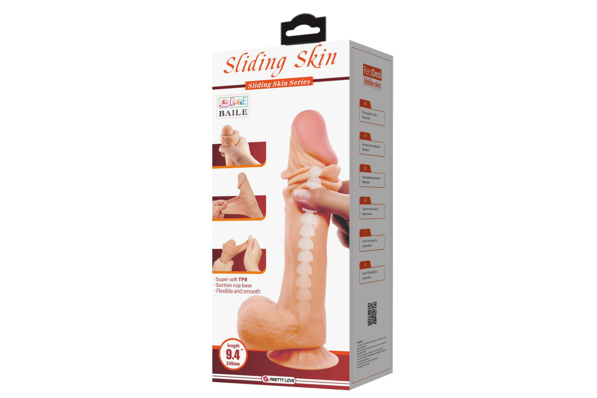 Телесный фаллоимитатор с эффектом скользящей кожи – 24 см