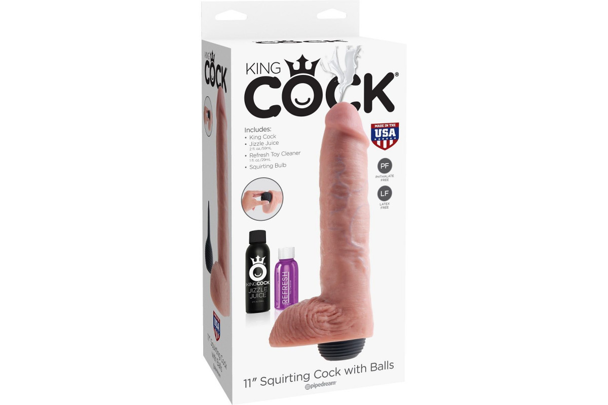 Телесный фаллоимитатор с функцией семяизвержения 11 Squirting Cock with balls - 27,9 см.