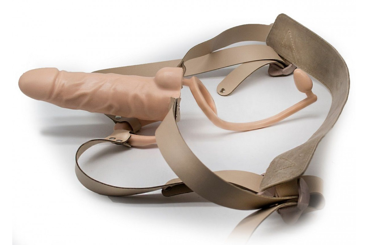 Соединительная консоль (полипропиленовая изогнутая особым образом «палочка» с анальным коннектором в виде оливки) объединяет пустотелый фаллоимитатор, ремешки с бандажным поясом в единое целое для плотной, регулируемой, многоточечной фиксации на теле.