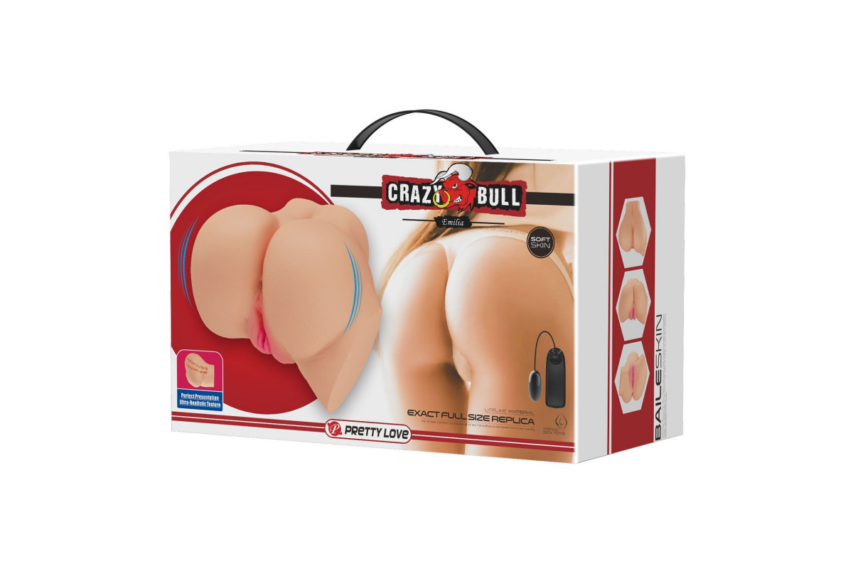 Телесный мастурбатор-полуторс Emilia с вибрацией — максимально реалистичное удовольствие