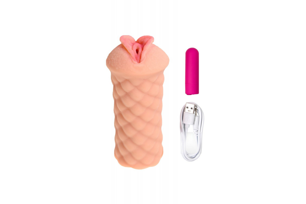 Рельеф на внешней стороне игрушки обеспечивает комфортное использование и не дает мастурбатору выскальзывать из рук. 10 потрясающих режимов вибрации заключенные в перезаряжаемой вибропуле, идущей в комплекте с мастурбатором.