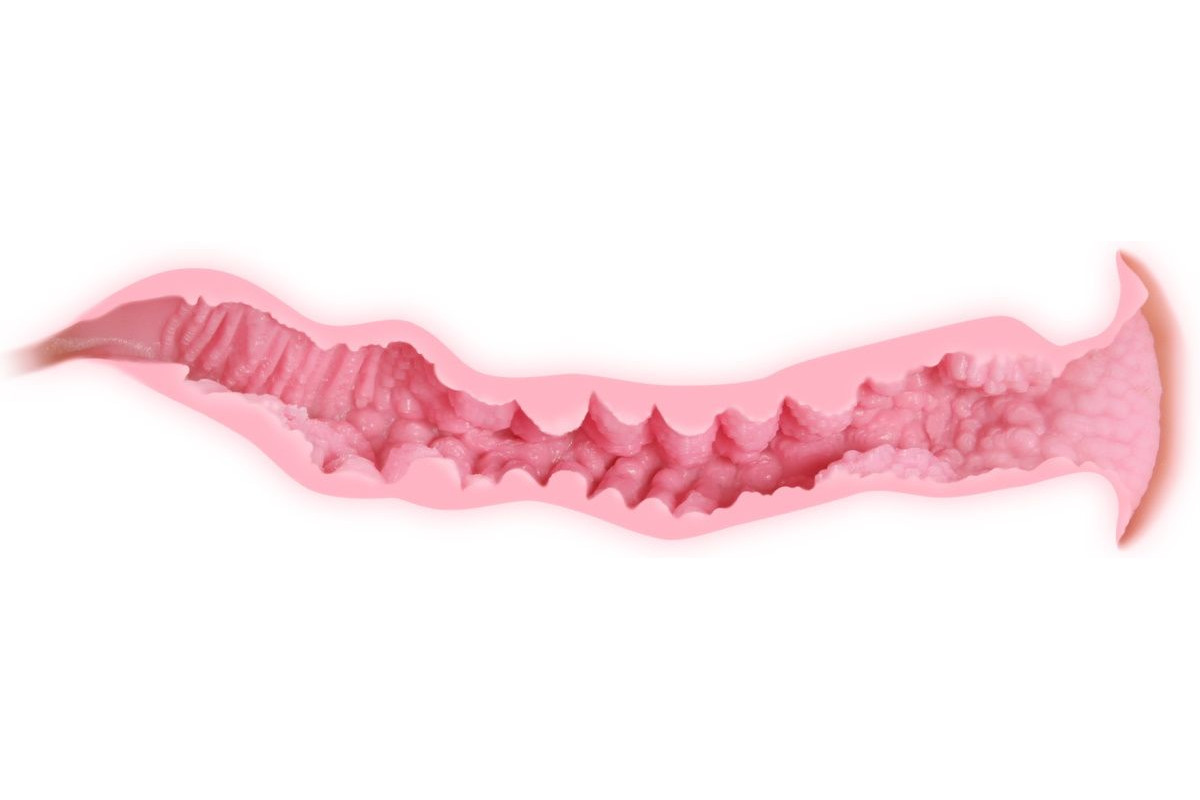 Влагалище имеет двойной слой который виден при открытии верхних половых губ, он создан для того что бы будоражить ваше воображение. Передняя часть, в сочетании с двойным слоем и выпуклой точкой-G, имеет частые влагалищные мембраны и заломы. В средней части сочетание большого выпуклого изгиба и пунктирной складки. Имеет сквозную структуру для легкого очищения.