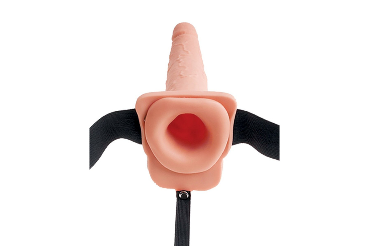 Телесный полый страпон с имитацией эякуляции 7.5 Hollow Squirting Strap-On with Balls - 21,6 см.