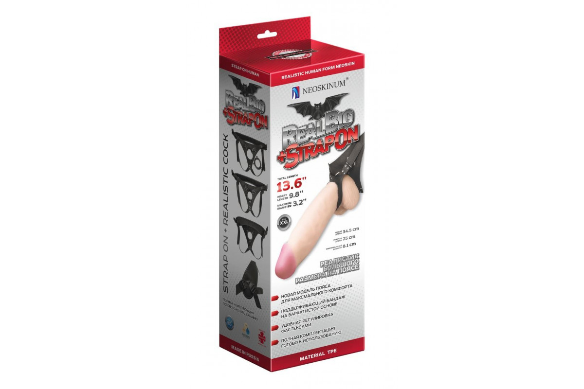 Телесный реалистичный фаллоимитатор на черных трусиках Real Big Strap-On — 34,5 см