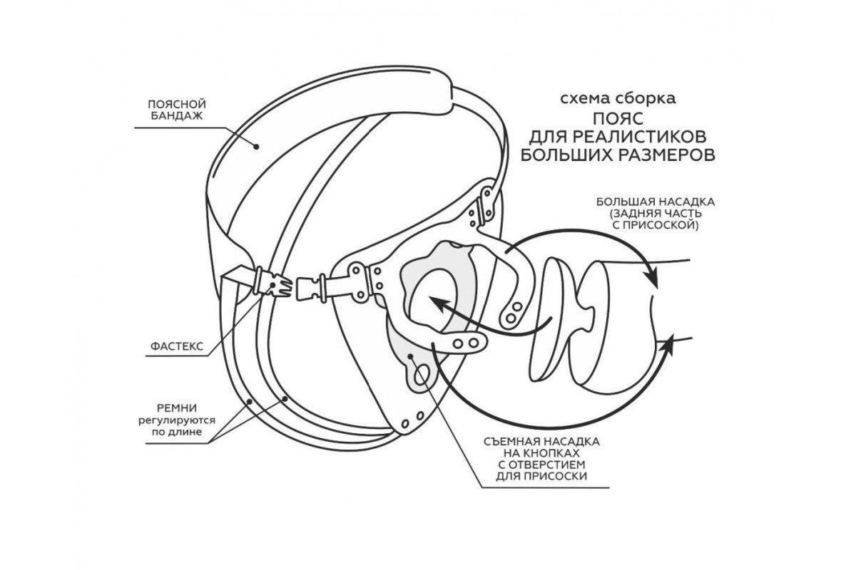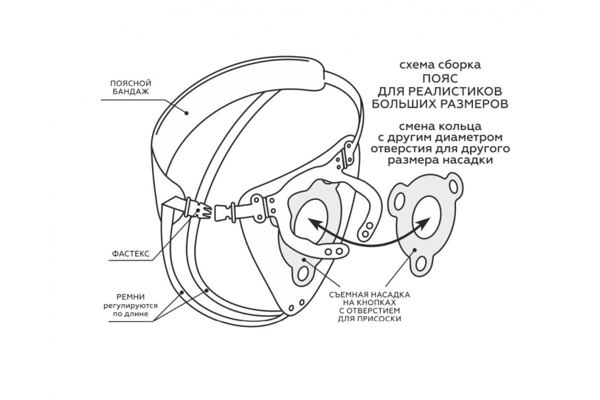 К поясу прилагается съемное кольцо на кнопках, благодаря чему пояс становится универсальным под любой размер присоски. Учитывая, что хомутик на корпус изделия также имеет кнопки для изменения диаметра, то такой пояс можно использовать в очень широком диапазоне размеров.