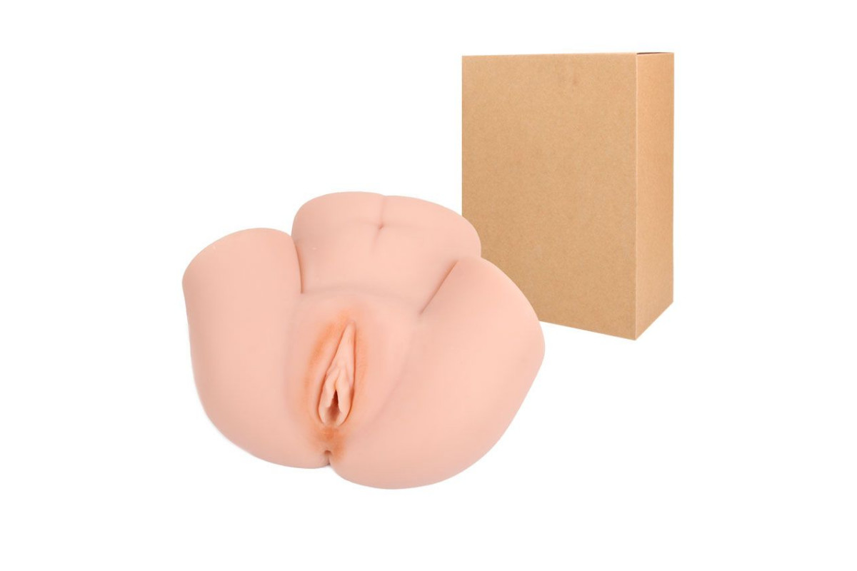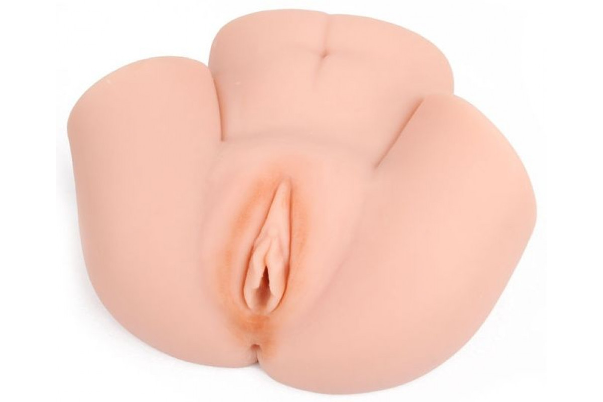 Телесный реалистичный мастурбатор-полуторс с двумя функциональными отверстиями
