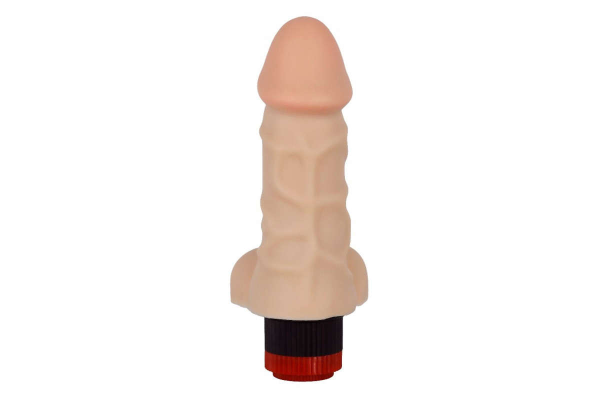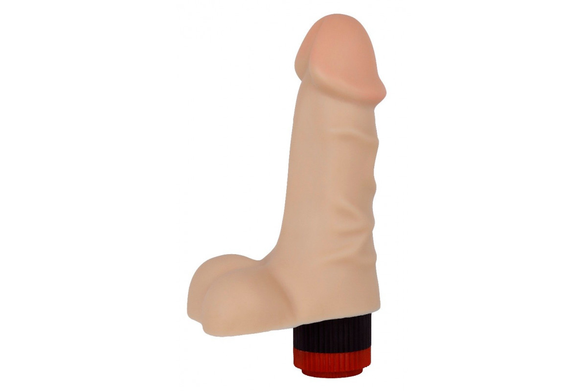 Телесный реалистичный вибратор с мошонкой — 16,5 см