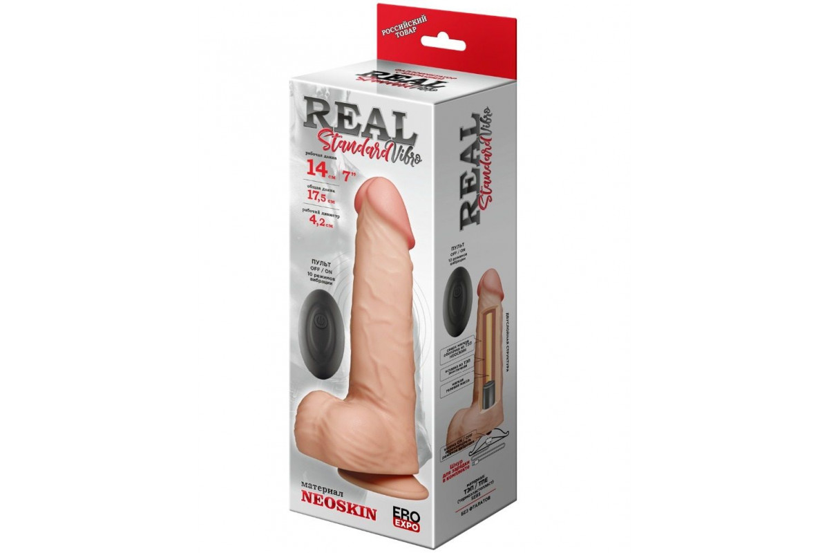 Телесный вибратор-реалистик REAL Standard с пультом ДУ — 17,5 см