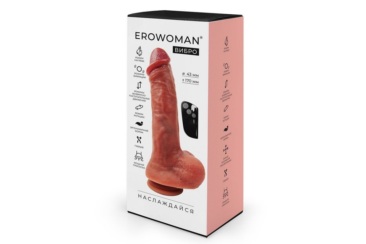 Форма в виде пениса, естественный оттенок поверхности, ярко выраженные венки и складочки, хорошо очерченные головка и мошонка придают секс-игрушке максимальной реалистичности. Вибрация, разные режимы ротации и возвратно-поступательных движений, нагрев, мягкая головка, приятный на ощупь материал усиливают возбуждение и доводят до пика наслаждения. Жёсткий ствол дарит чувство заполненности и обеспечивает незабываемые ощущения. Присоска надёжно удерживает изделие на ровной горизонтальной или вертикальной поверхности.