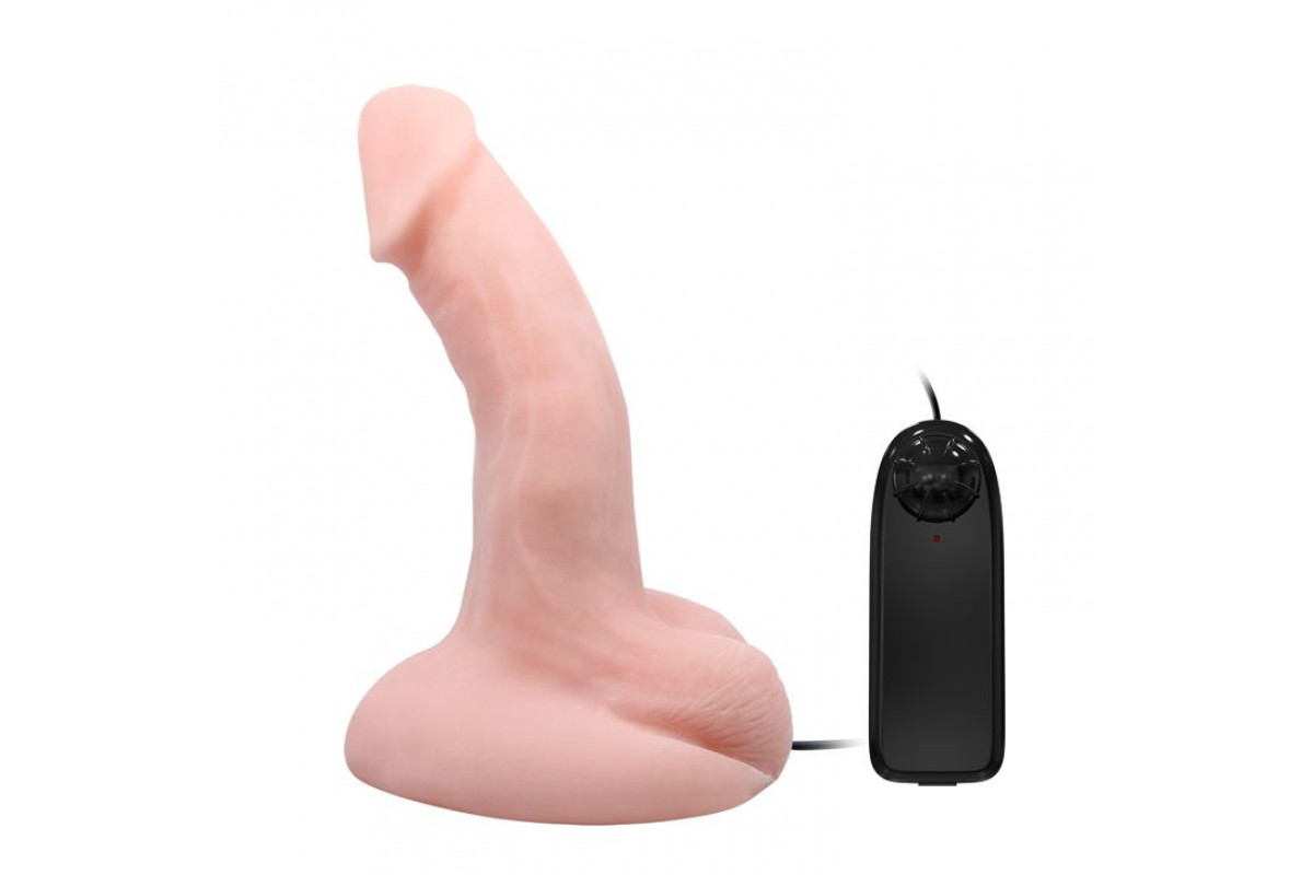 Телесный вибромассажер-реалистик на плоской подошве — 20 см
