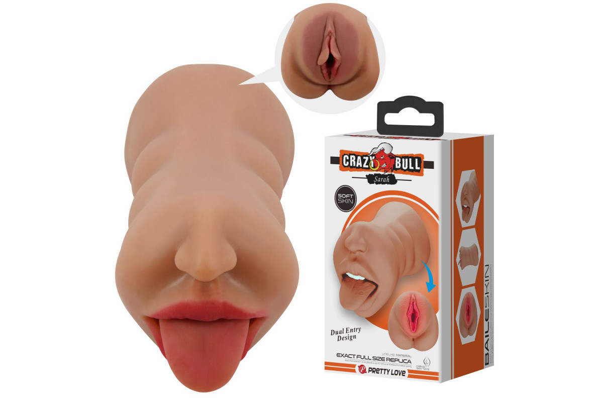 Темно-бежевый двусторонний мастурбатор Sarah — ротик и вагина