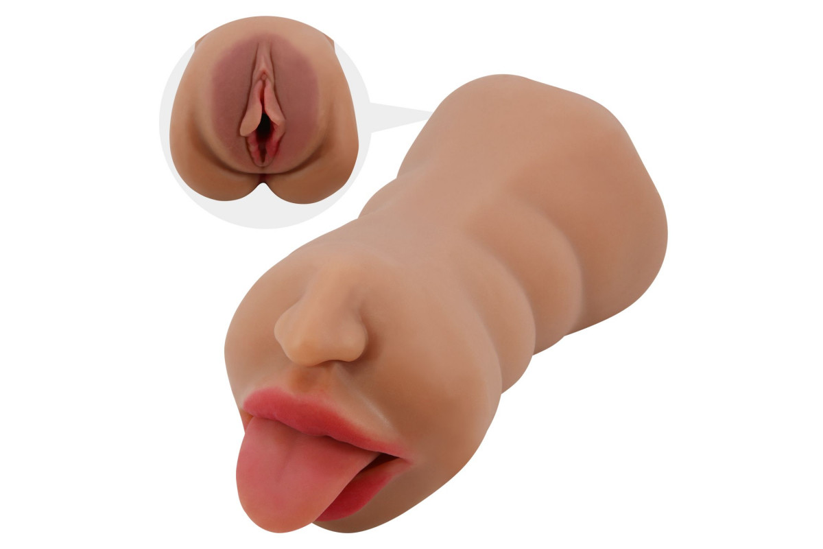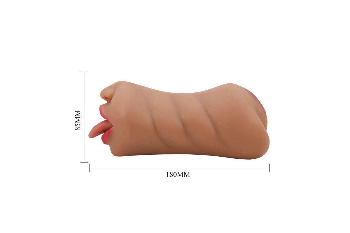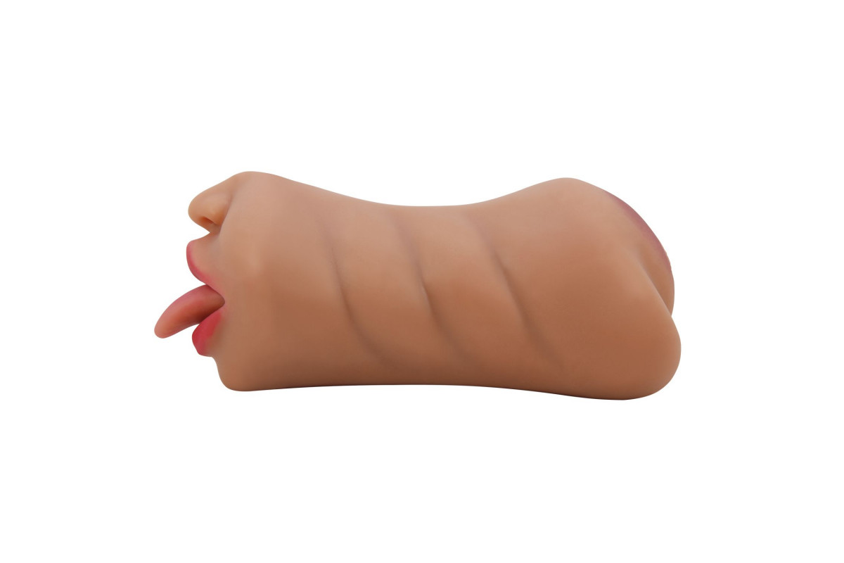 Темно-бежевый двусторонний мастурбатор Sarah - ротик и вагина