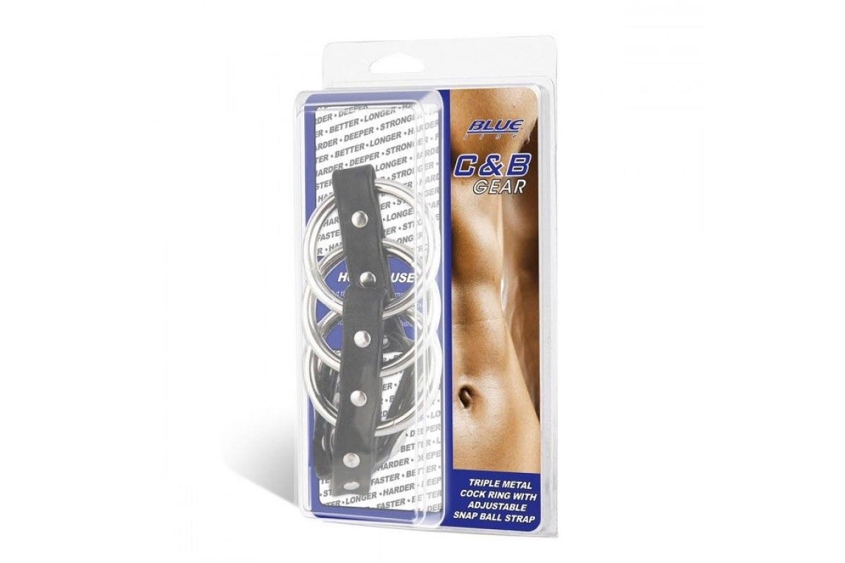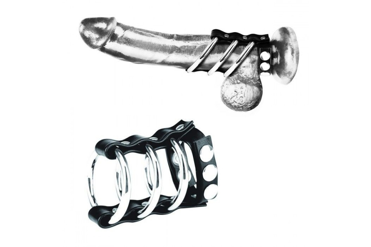 Тройное металлическое кольцо на пенис с регулируемым ремешком