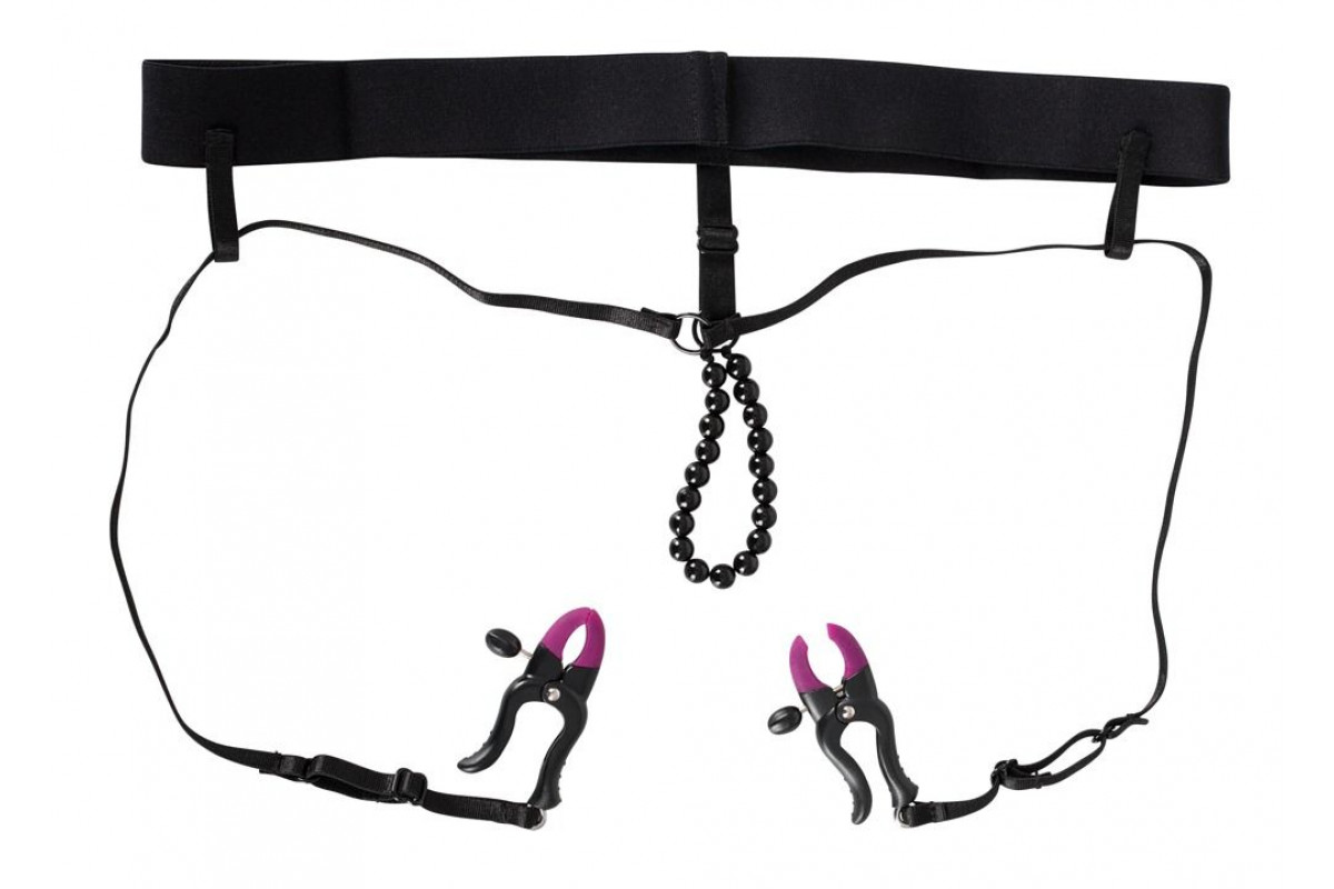 Трусики с зажимами для половых губ и бусинками для массажа промежности — интимное удовольствие и стимуляция