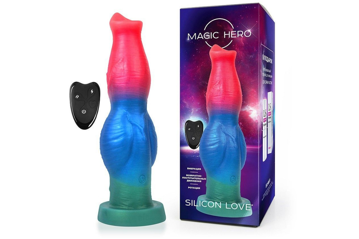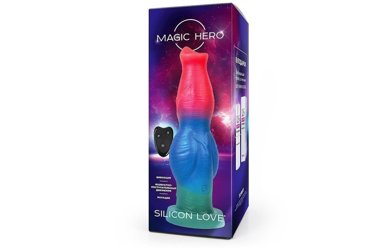 Цветной фантазийный вибратор с возвратно-поступательными движениями и ротацией — 26 см