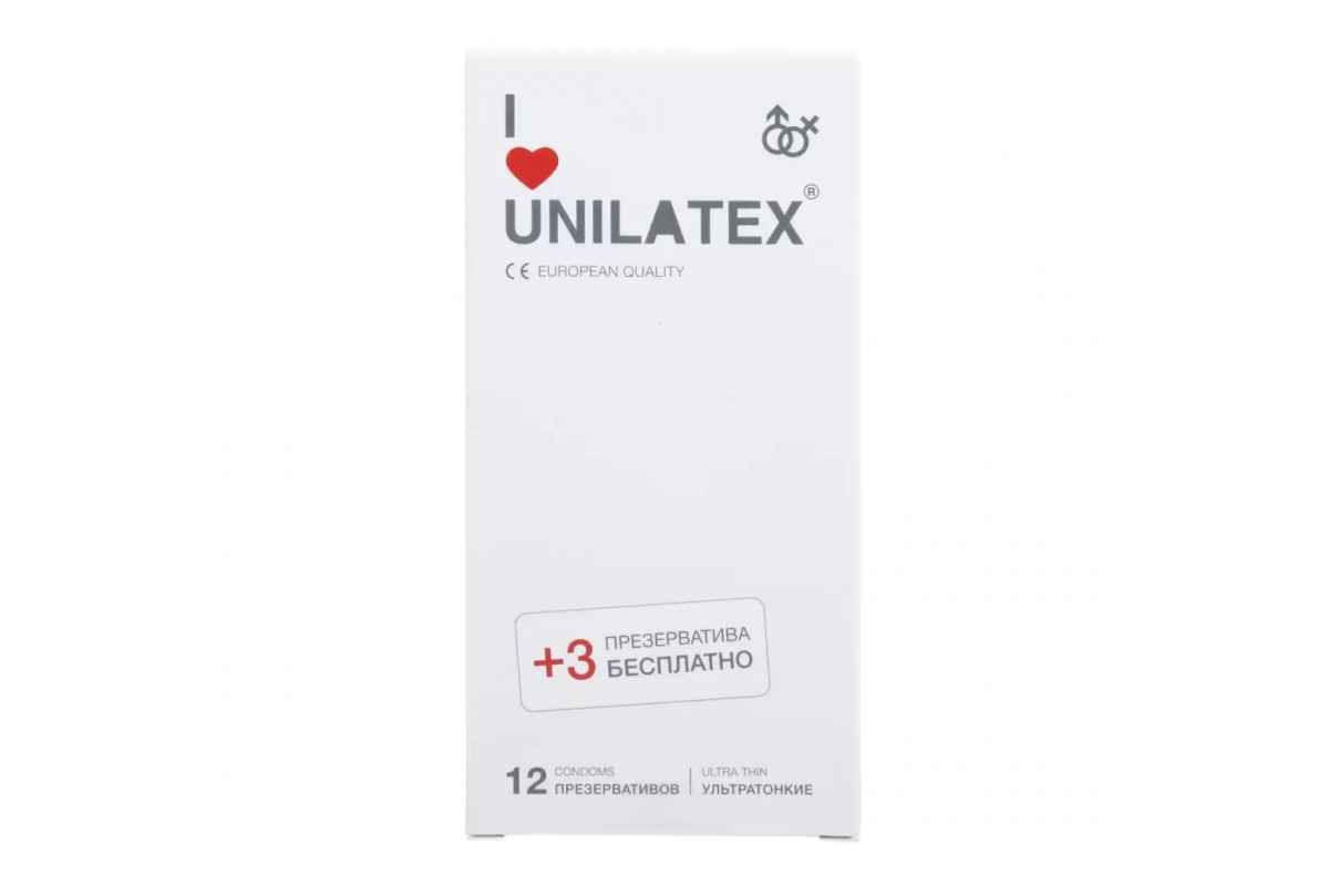 Ультратонкие презервативы Unilatex Ultra Thin - 12 шт. + 3 шт. в подарок