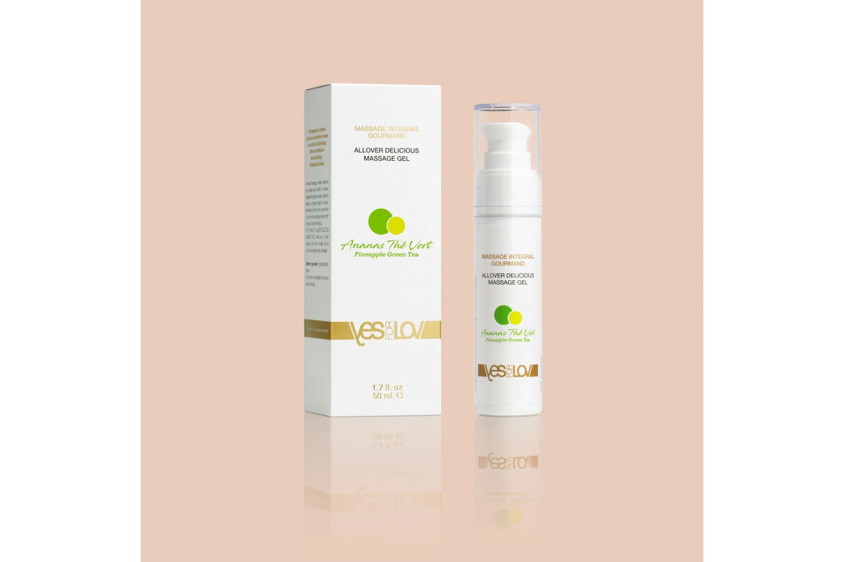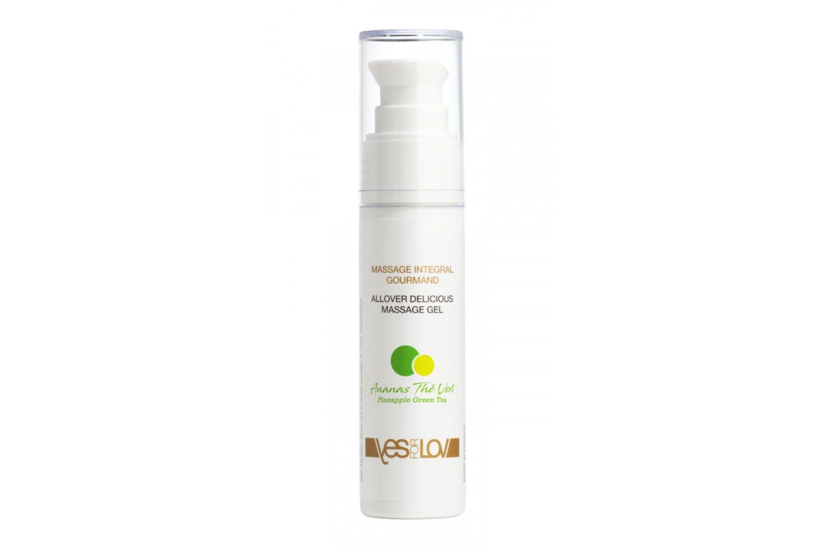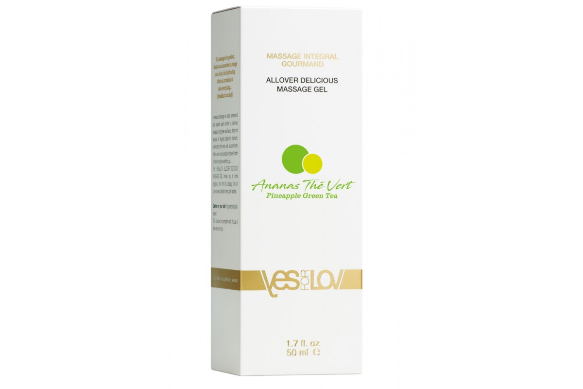 Универсальный массажный гель 3-в-1 Allover Delicious Massage Gel с ароматом ананаса и зеленого чая – 50 мл