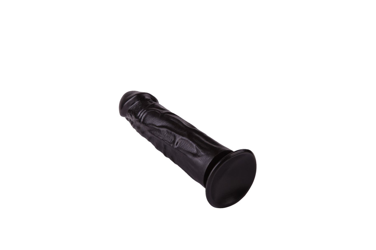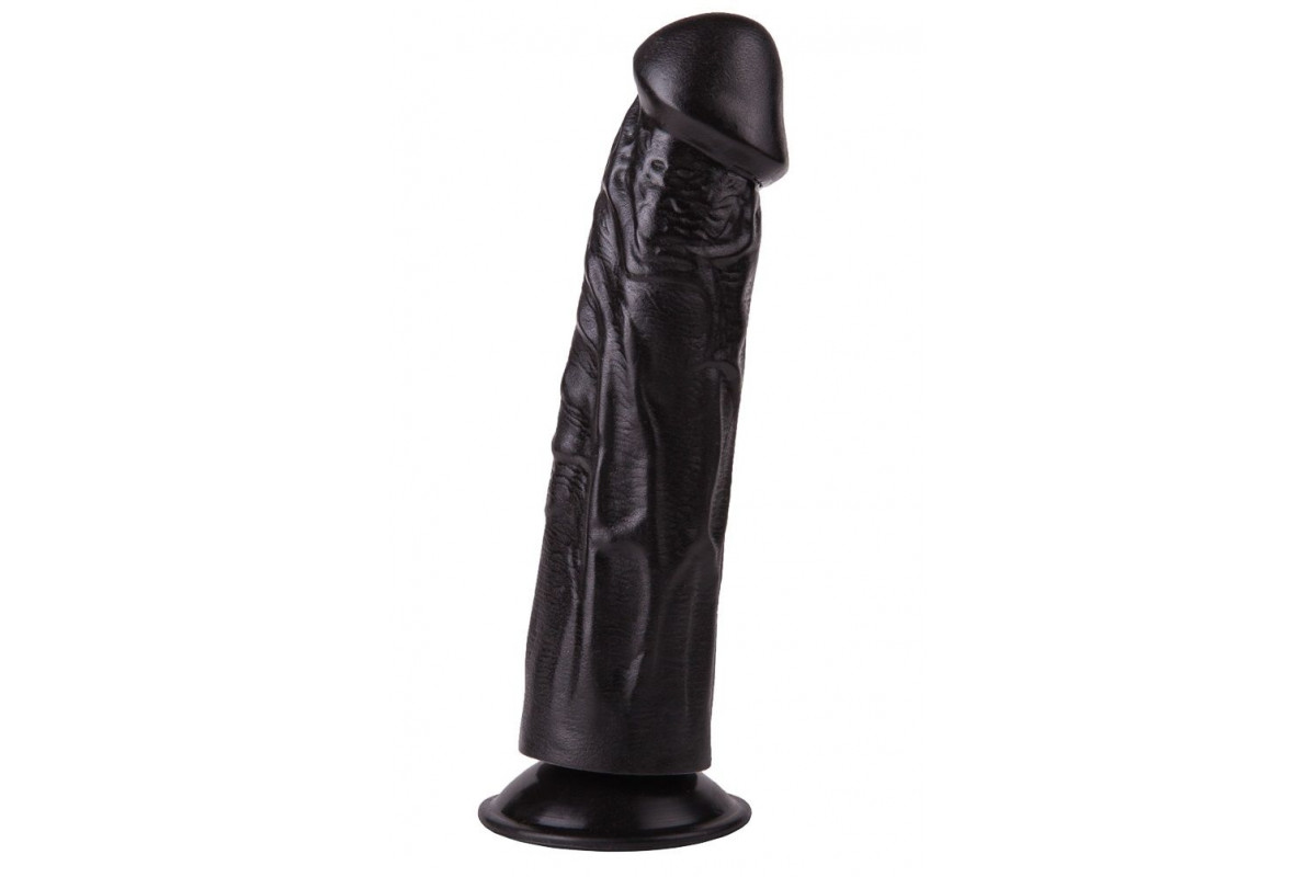 Упругий чёрный фаллоимитатор на подошве-присоске — 18,8 см