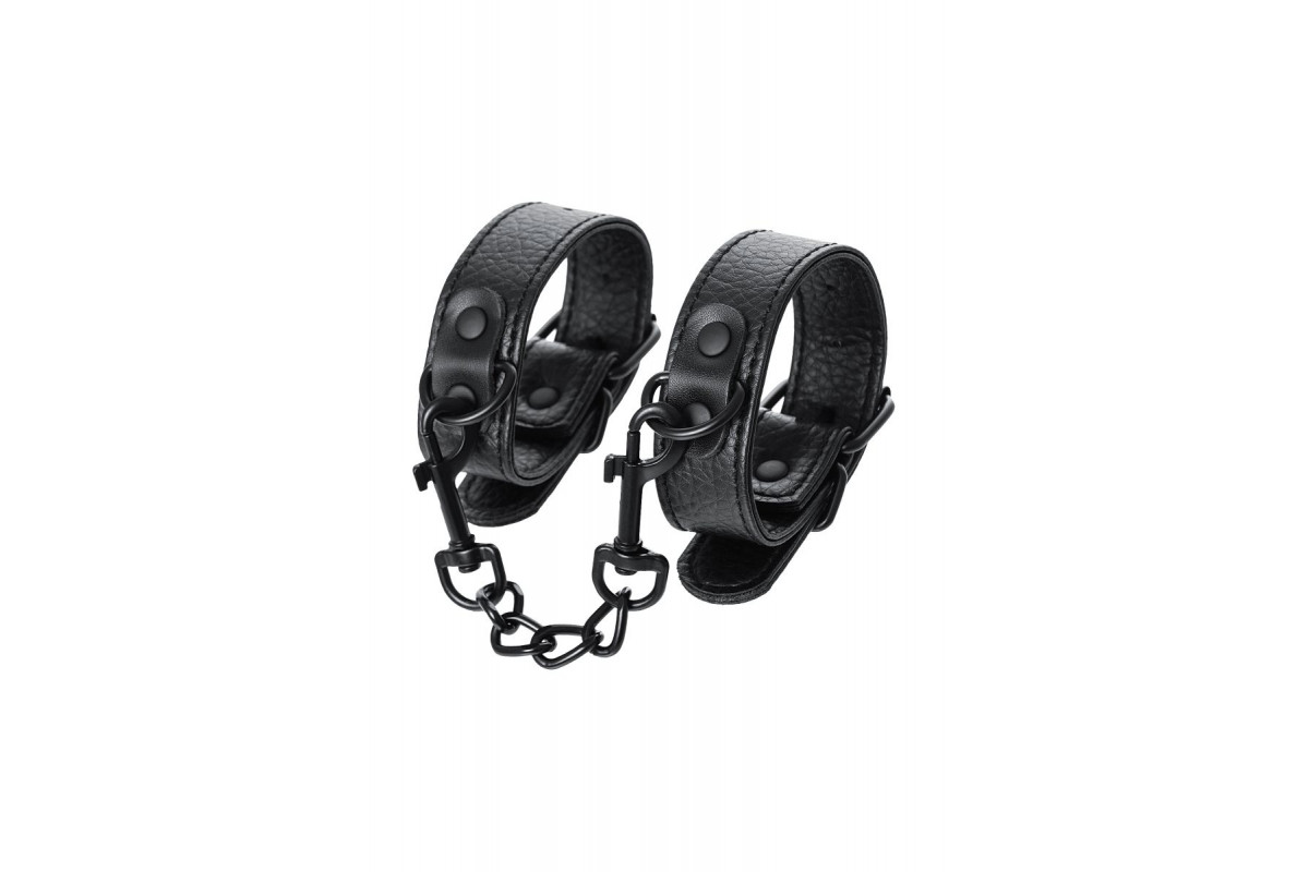 Узкие черные наручники на сцепке — добавьте остроты в ваши интимные игры