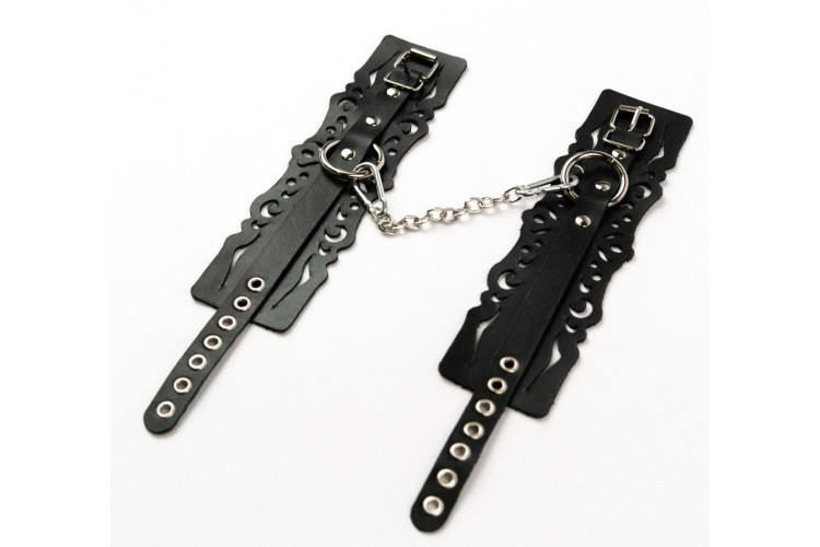 Главная особенность этих оков — уникальный узорчатый дизайн, выполненный из качественной натуральной кожи, которая не только смотрится очень эффектно, но и обеспечивает долговечность и комфорт при ношении. Каждый элемент украшен декоративными деталями, подчеркивающими их стильность и индивидуальность. Регулируемые ремешки позволяют идеально подогнать оковы под любую фигуру, обеспечивая надежную фиксацию и свободу движений. Такой дизайн делает их универсальным аксессуаром, подходящим как для романтических вечеров, так и для более дерзких экспериментов, комбинируя визуальную привлекательность с функциональностью.