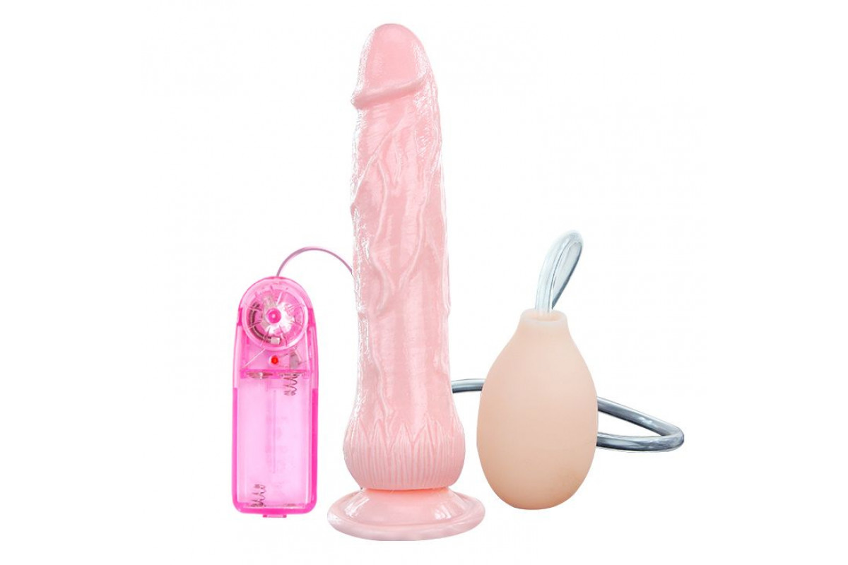 Вибратор с эякуляцией оснащен специальной мягкой емкостью, куда наливается вода или лубрикант. Во время нажатия на эту емкость жидкость вытекает через головку фаллоимитатора, являясь искусственным аналогом естественного семяизвержения.