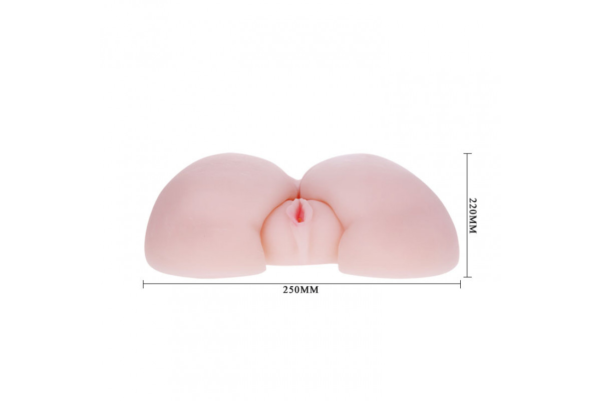 Имеет два любовных отверстия, внутренняя поверхность ребристая. Имеет ярко выраженные половые губки. Комплектуется виброяичком с выносным пультом управления вибрацией. Размер - 22 х 25 см.