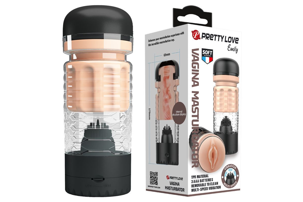 Вибромастурбатор-вагина Emily в черной колбе — уникальное удовольствие для взрослых
