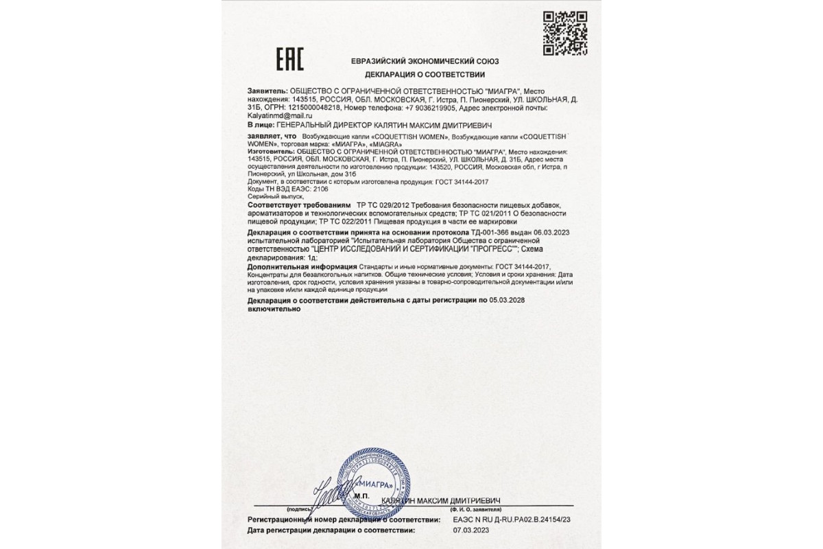 Добавьте возбудитель мгновенного действия Coquettish Women в свою интимную коллекцию и наслаждайтесь каждым моментом с особым удовольствием!