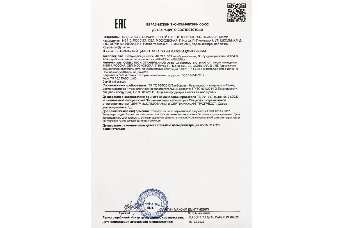 Возбудитель мгновенного действия Silver Fox – 30 мл.