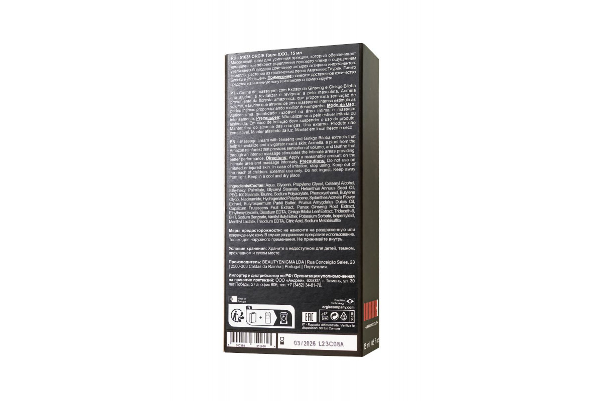 Добавьте в свою интимную жизнь немного страсти и ярких эмоций с возбуждающим кремом для мужчин ORGIE Touro XXXL и наслаждайтесь каждым моментом!