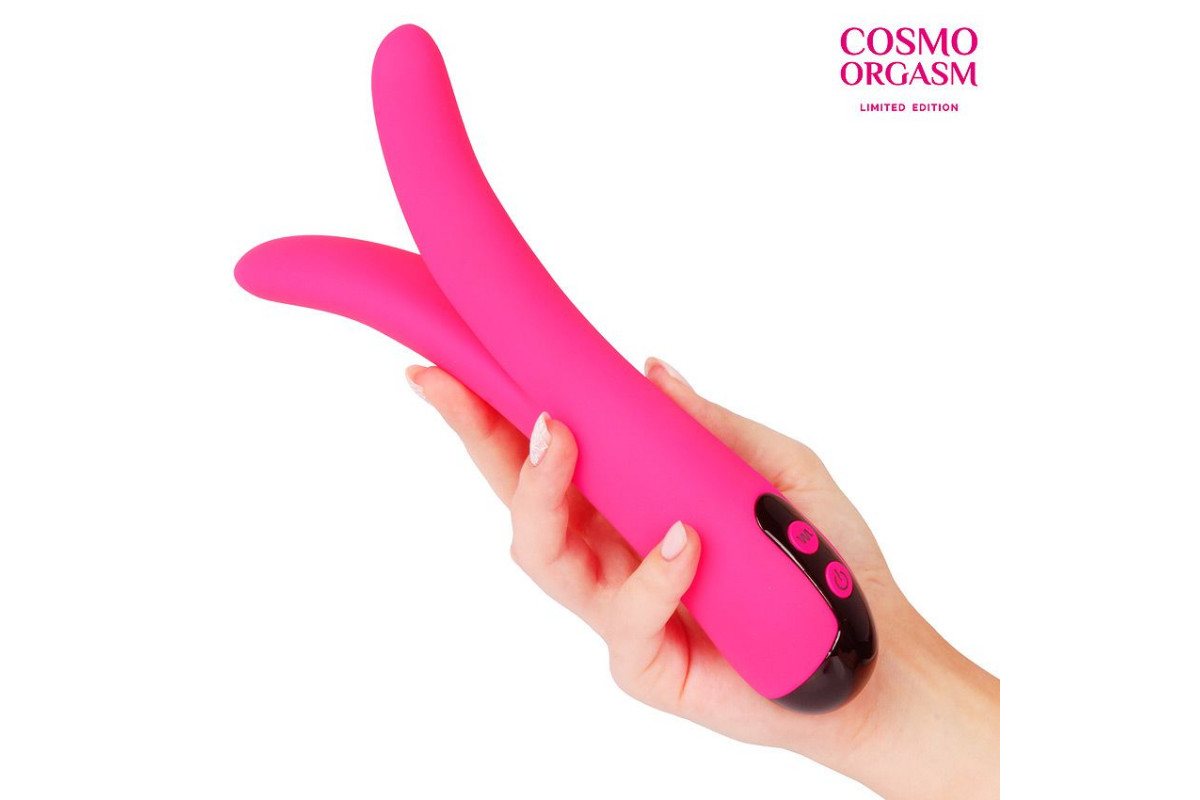 Ярко-розовый перезаряжаемый сплит-вибратор – 22 см