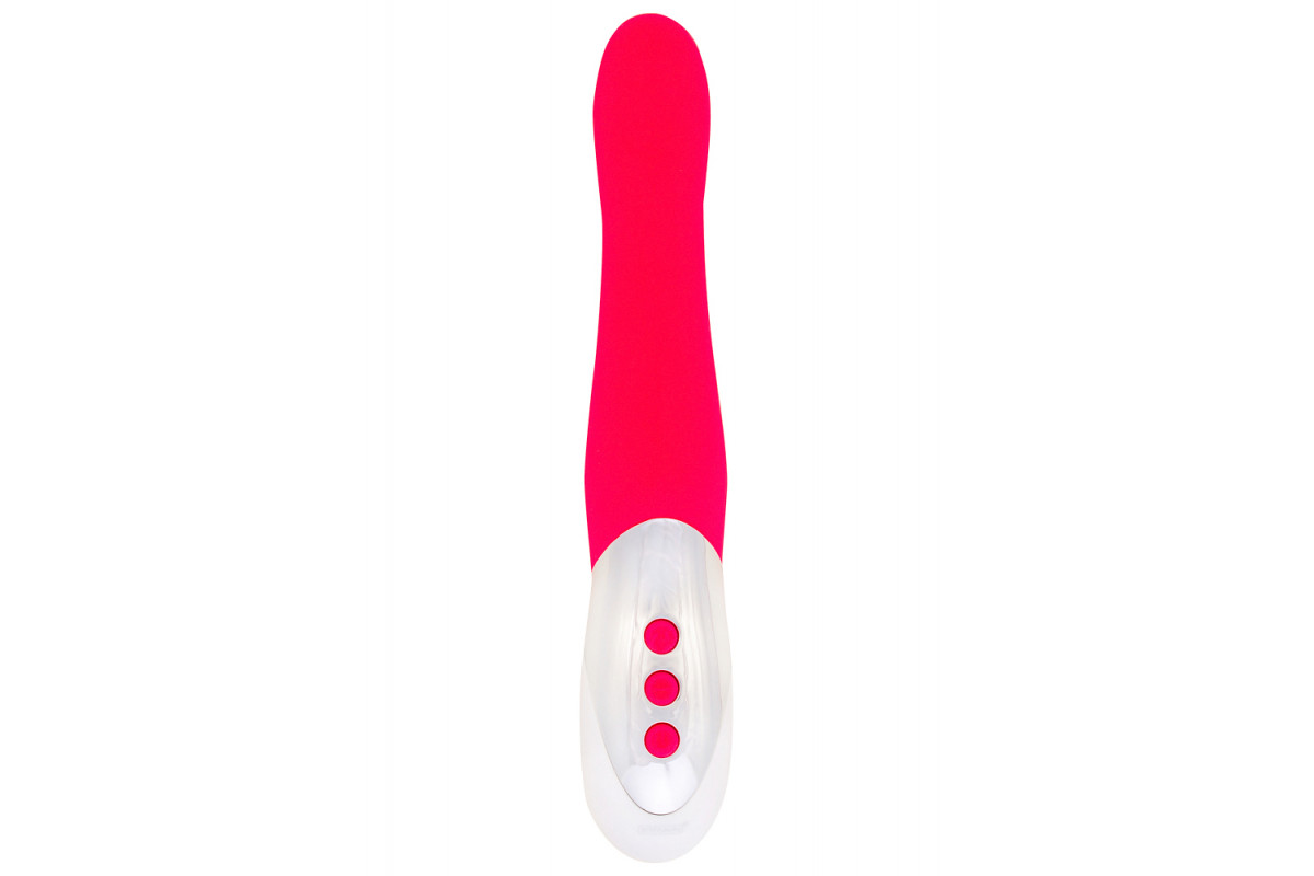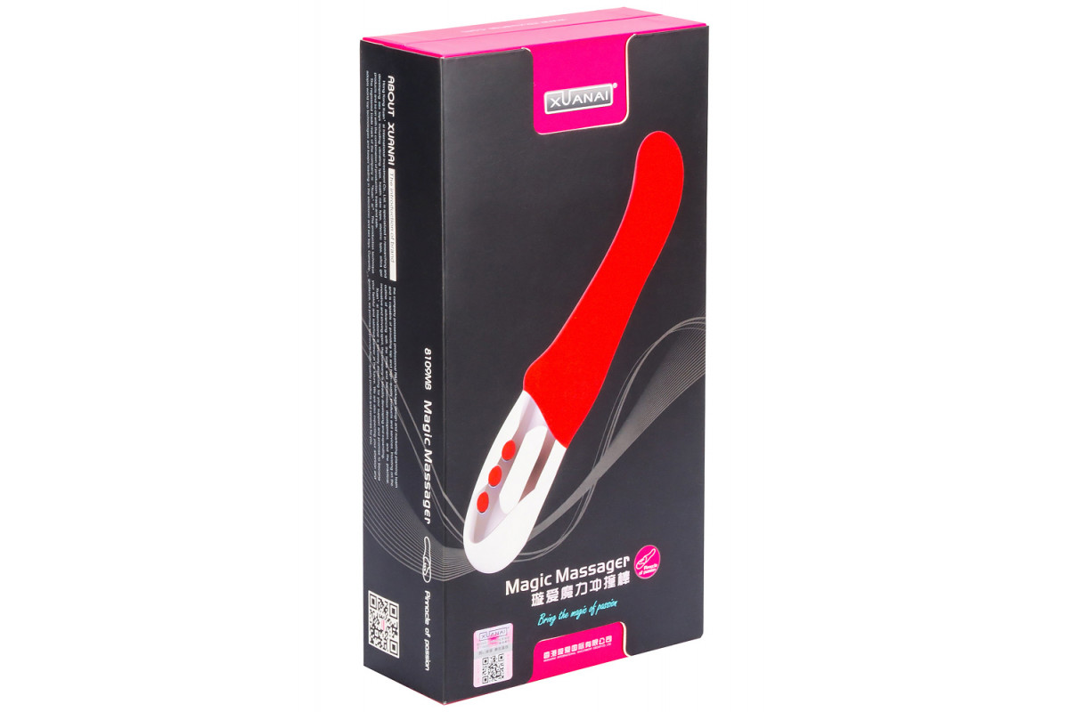 Имеет 5 режимов пульсации. При весе в 580 грамм легко помещается в дамской ручке, имеет удобные кнопки включения и регулировки режимов. Массажер перезаряжаемый, что позволяет не задумываться о батарейках, а легко и удобно заряжать устройство через USB-разъем. Рабочая длина - 15 см.