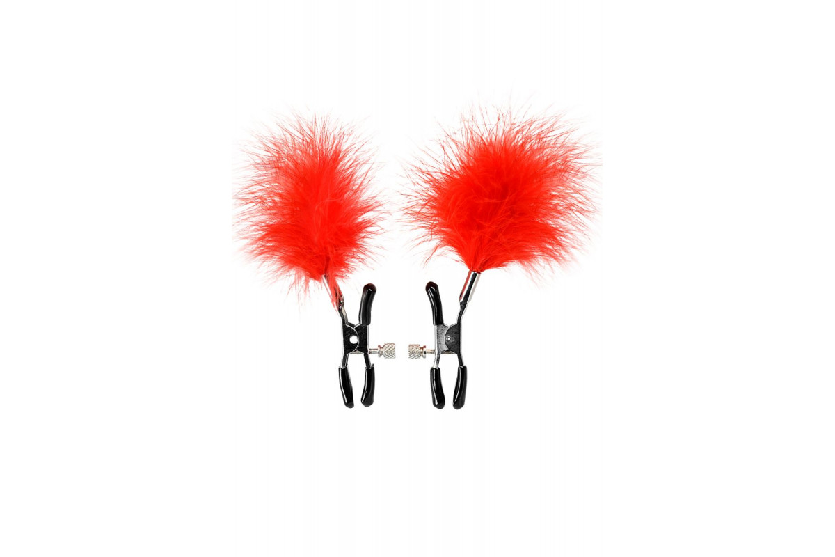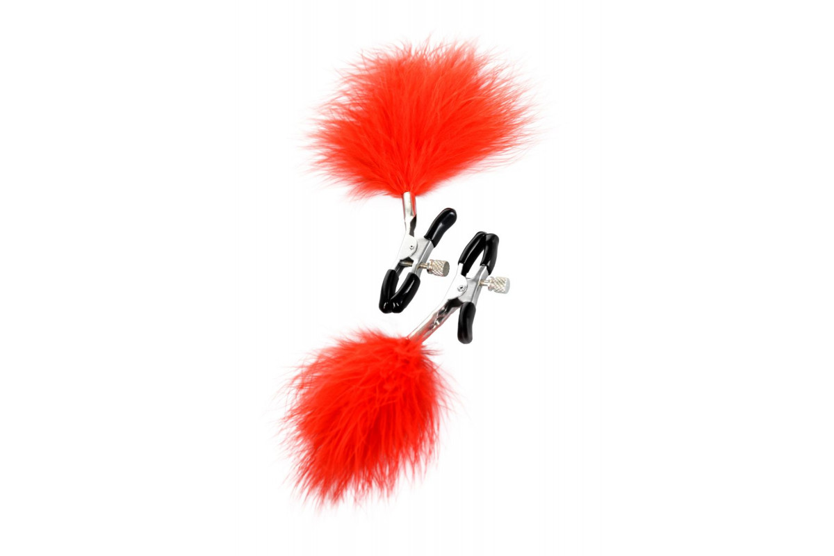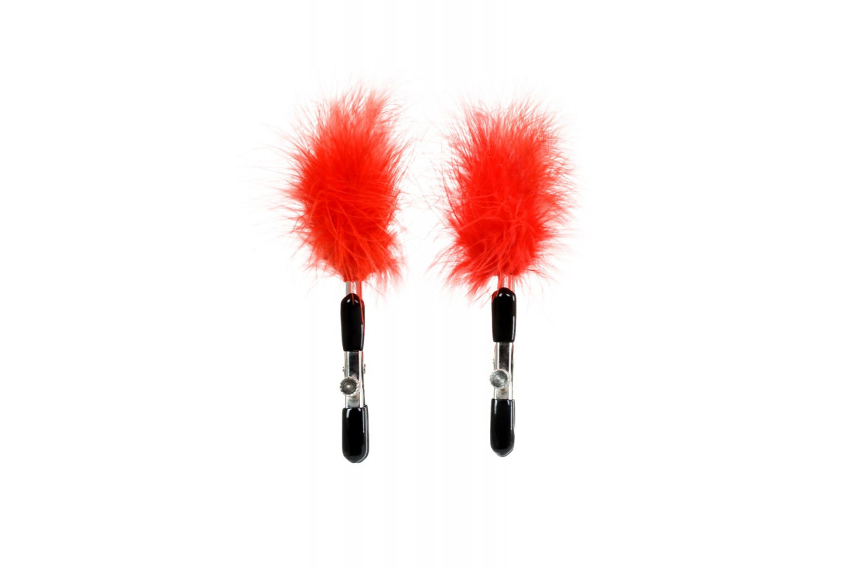 Зажимы для сосков с красным пухом Theatre — добавьте страсти и яркости в ваши эротические игры