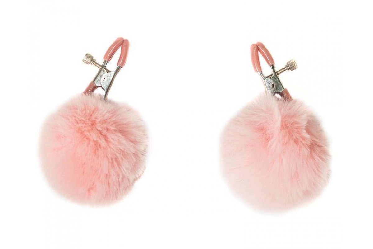 Зажимы на соски Angelic с розовыми меховыми шариками — добавьте нотку страсти и нежности в ваши интимные игры
