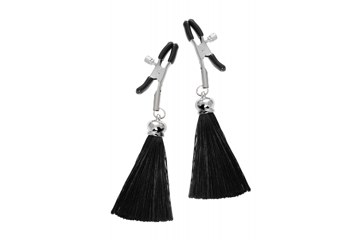 Зажимы на соски «Прищепки» с черными кисточками из шелка — идеальный выбор для тех, кто ищет уникальные ощущения и стильный дизайн
