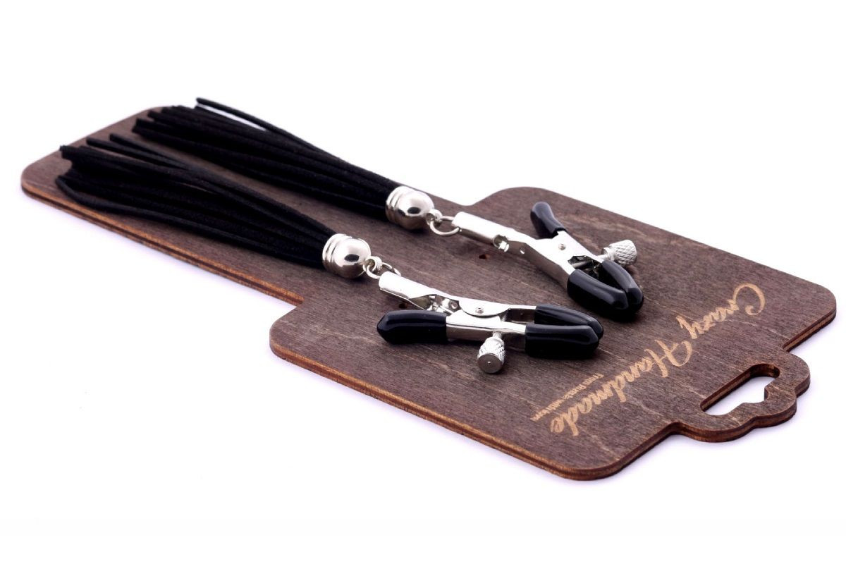 Зажимы на соски с черными замшевыми кисточками.