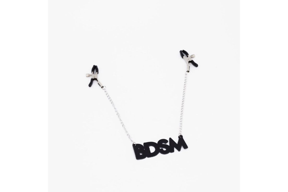Зажимы оснащены мягкими резиновыми наконечниками , которые обеспечивают комфортное сжатие сосков, не травмируя кожу. Между собой зажимы соединены металлической цепочкой , на которой эффектно расположена надпись BDSM , добавляющая изделию игривости и символизма. Сила сжатия регулируется с помощью подвижного колечка на зубцах , что позволяет настроить интенсивность воздействия под свои предпочтения.