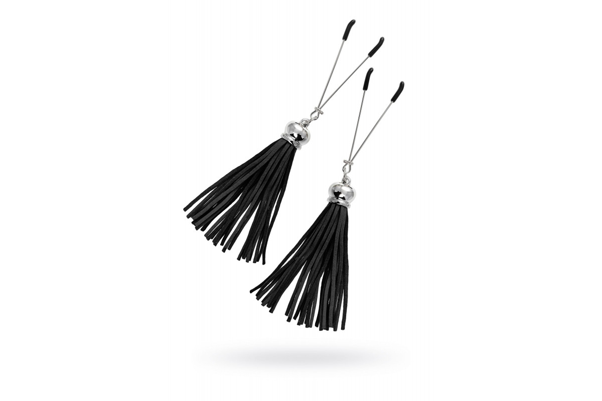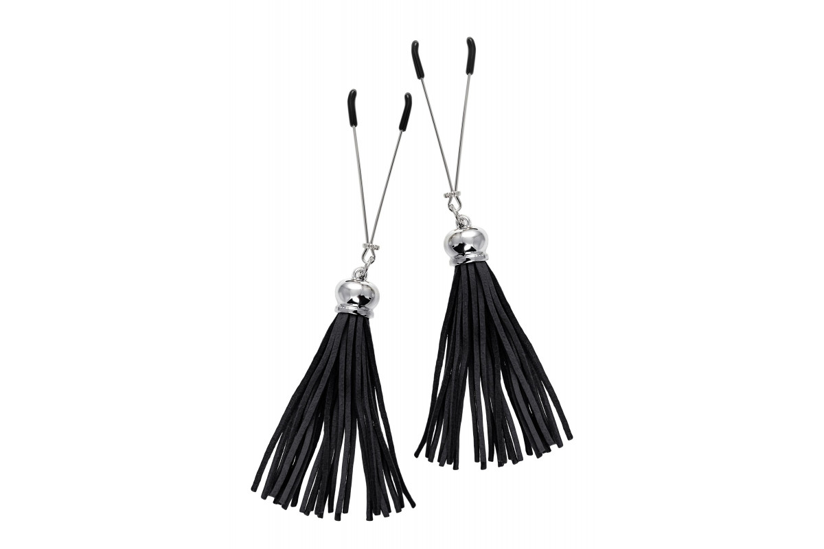 Зажимы на соски «Вилки» с черными кисточками из замши — уникальный аксессуар для взрослых