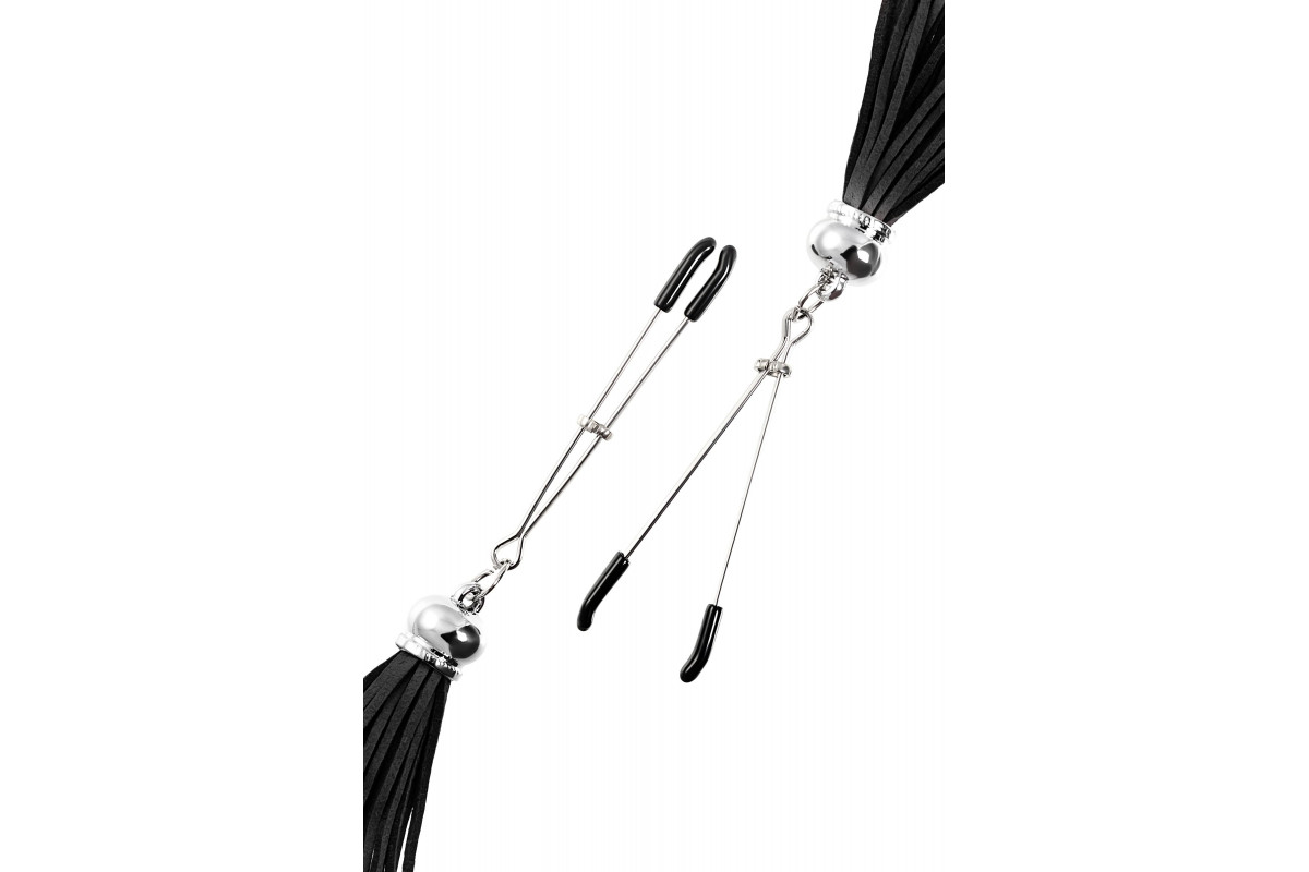 Зажимы на соски «Вилки» с черными кисточками из замши