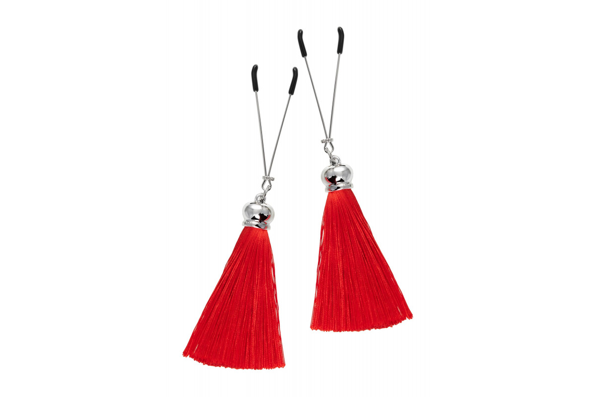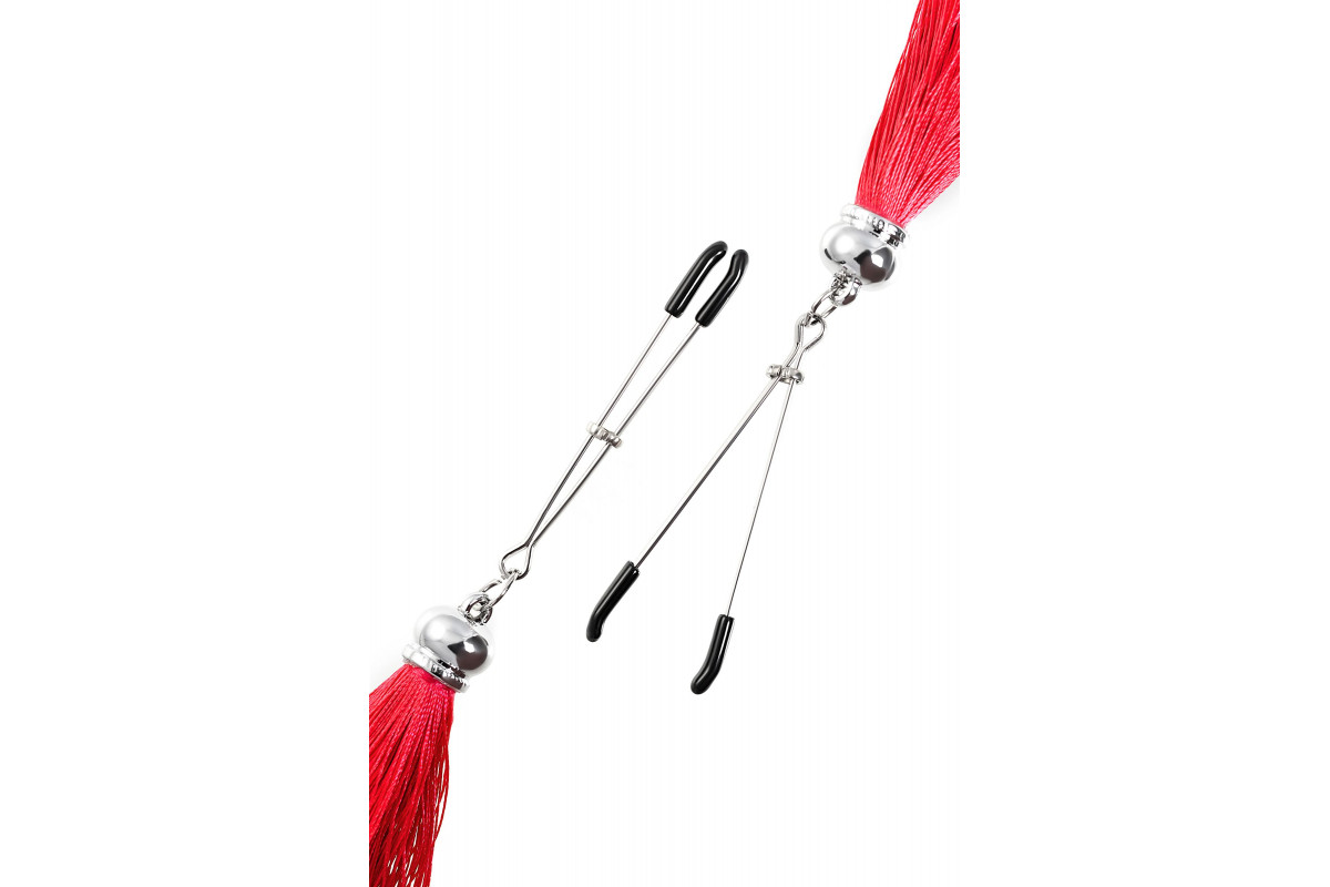 Зажимы на соски «Вилки» с красными кисточками из шелка — добавьте остроты и изящества в ваши интимные игры