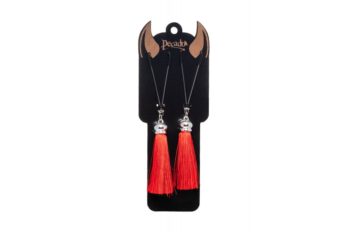 Добавьте ярких красок и новых ощущений в ваши интимные моменты с зажимами на соски «Вилки» с красными шелковыми кисточками!