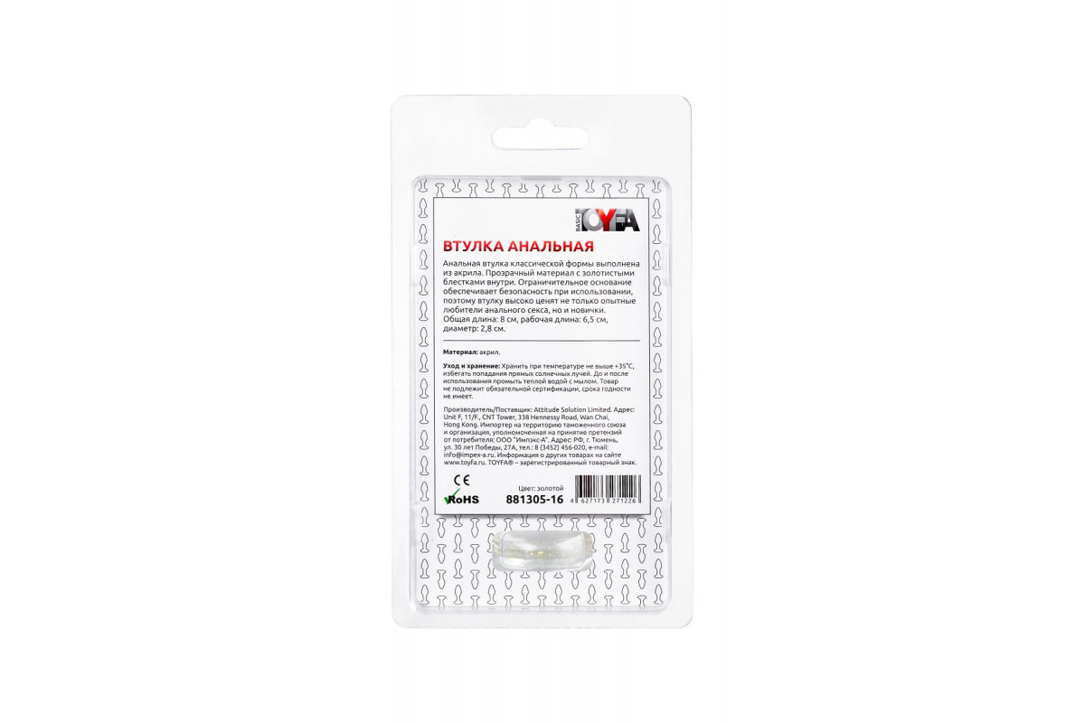 Золотистая акриловая анальная втулка – идеальный выбор для тех, кто ищет сочетание эстетики, качества и незабываемых ощущений