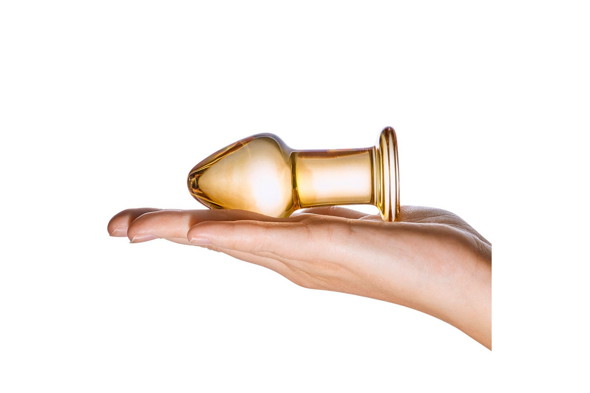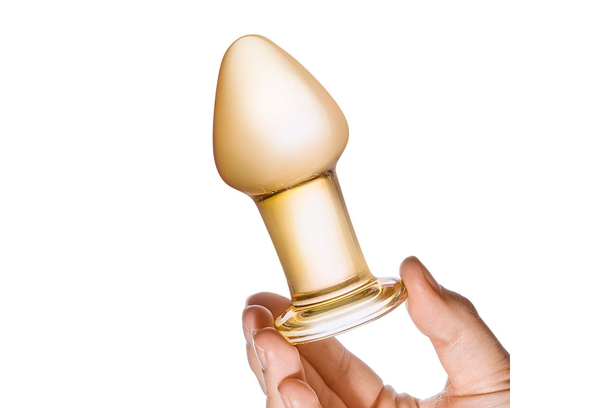 Анальная пробка Over Easy покоряет с первого взгляда классической формой и красивым медовым оттенком с перламутровым блеском. Пробка выполнена из великолепного художественно обработанного стекла. У анальной пробки широкое, прочное основание, которое не только гарантирует безопасность анальной игры, но и может быть использовано в качестве ручки для дополнительного контроля. Попробуйте повернуть её, когда она вставлена, чтобы получить новые захватывающие ощущения. Анальная пробка Over Easy изготовлена из ударопрочного стекла, что обеспечивает долговечность этой великолепной игрушки. Усилить ощущения от невероятной гладкости стекла поможет лубрикант. Стекло совместимо со всеми видами интимных гелей, так что смело выбирайте для анальной игры свой любимый вариант, чтобы насладиться неповторимым скольжением игрушки! Пробка невероятно проста в уходе и гигиенична: ее достаточно промыть водой с мылом. Если предварительно погрузить малышку Over Easy в теплую или холодную воду, она сохранит нужную температуру для более изысканной стимуляции. Рабочая длина - 8,3 см.