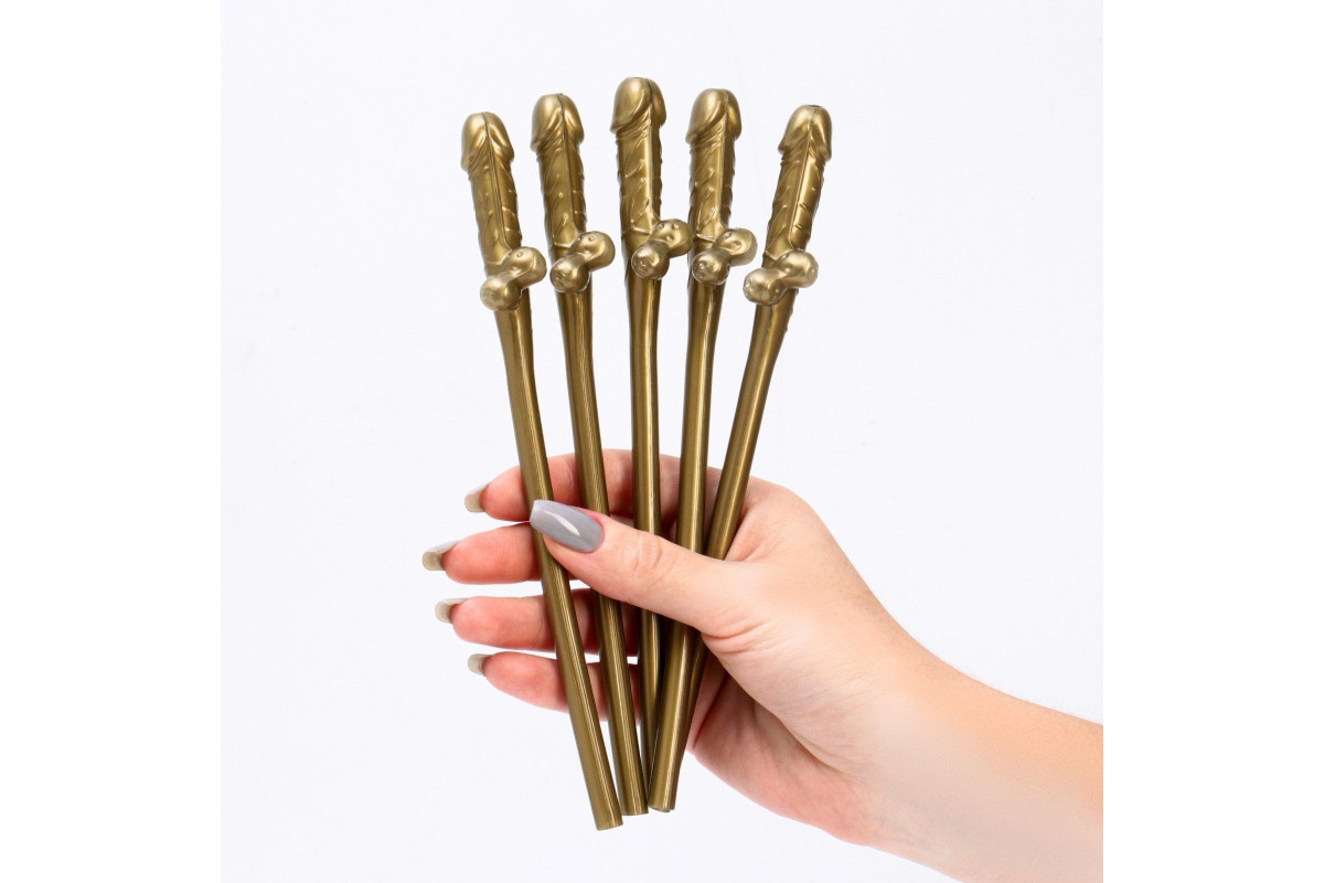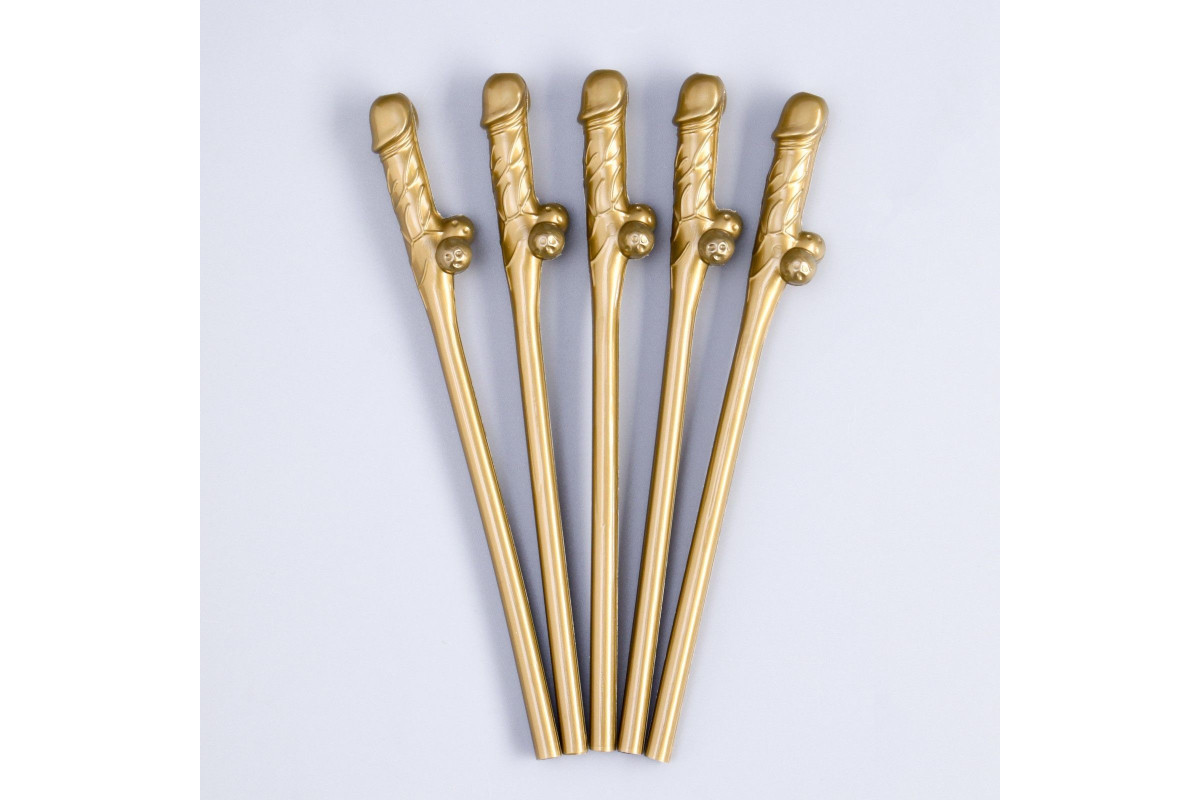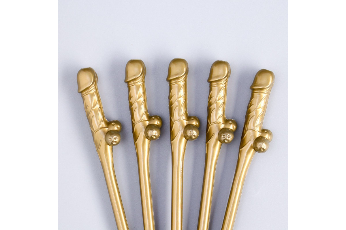 Золотистые коктейльные трубочки в виде пениса — 5 шт.