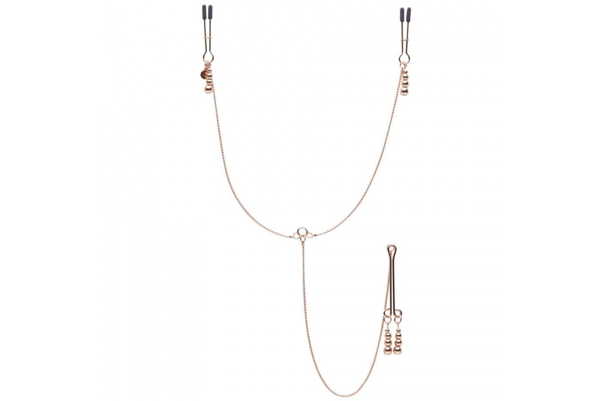 Золотистые зажимы для сосков и клитора All Sensation Nipple and Clitoral Chain